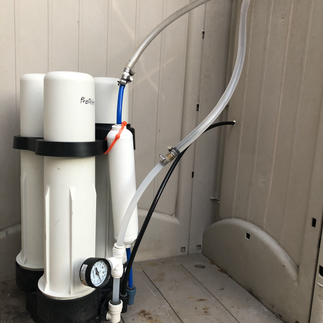 I placed my PRF-RO System in a small plastic shed I got from Lowes and drilled a couple of holes in the wall to run the water lines in and out.