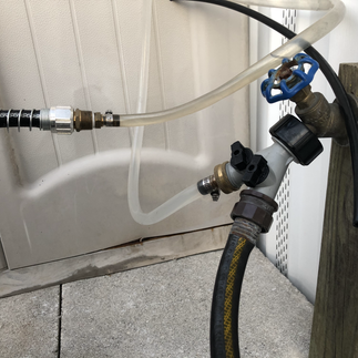 I took a small piece of the blue and white hose to Lowes to find the right brass fittings to convert from the stock hose to a slightly larger, more flexible hose connected to a water faucet and a water hose. If your not too savvy with this subject, get someone from your hardware store to help you. I went to the plumbing section ; ) Don't forget to get hose clamps for DIY connections. I apologize for not having the slightest clue as to what the brass parts/fittings are called. Not my field at all, lol. Here are the photos! I'm sure if you showed the guy in the plumbing section at your local hardware store, they would be able to figure it out with you!